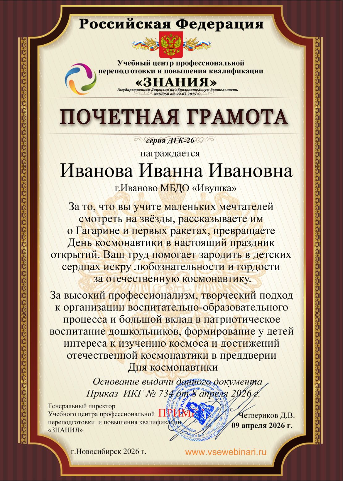 ВЫДАЧА ПОЧЕТНОЙ ГРАМОТЫ БЕСПЛАТНО И СРАЗУ!