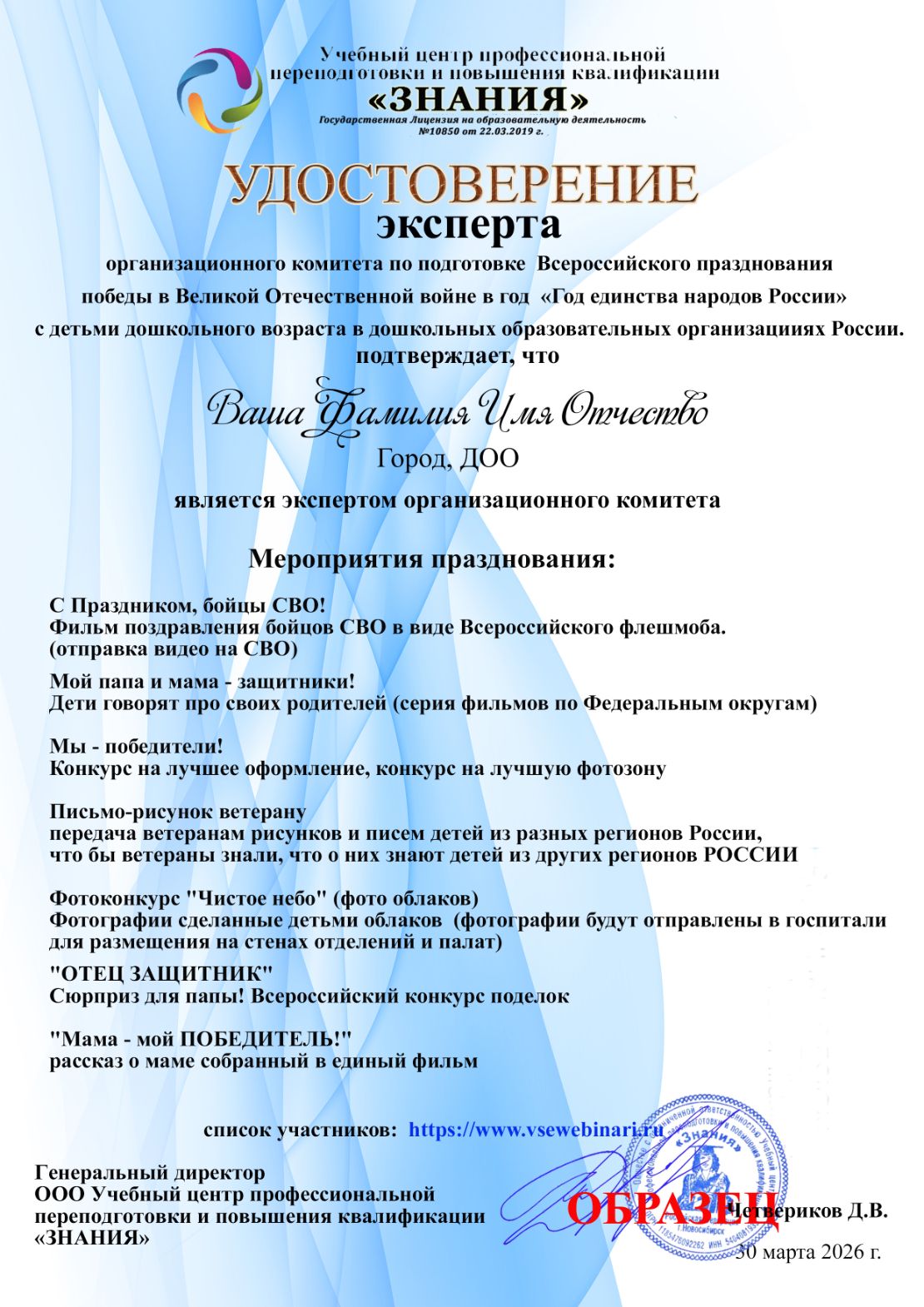 организационного комитета по подготовкеВсероссийского празднования победы в Великой Отечественной