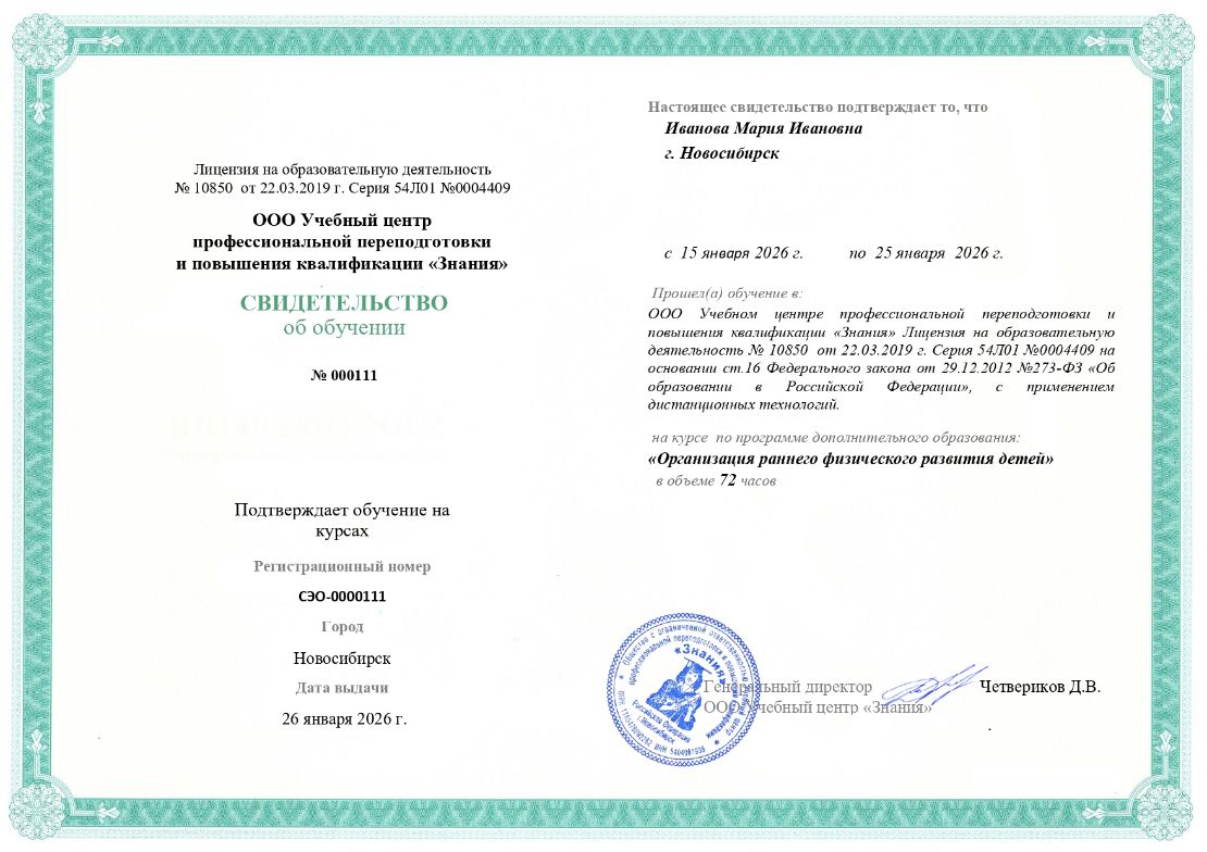 свидетельство обучения