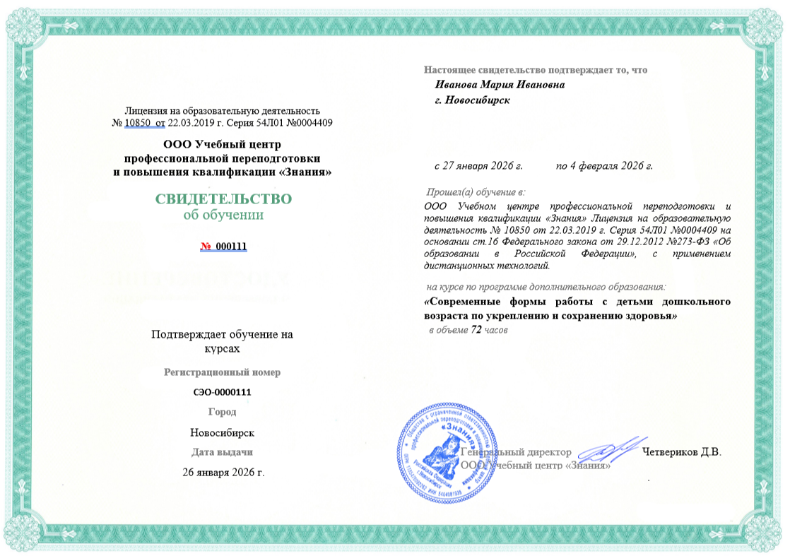 свидетельство обучения