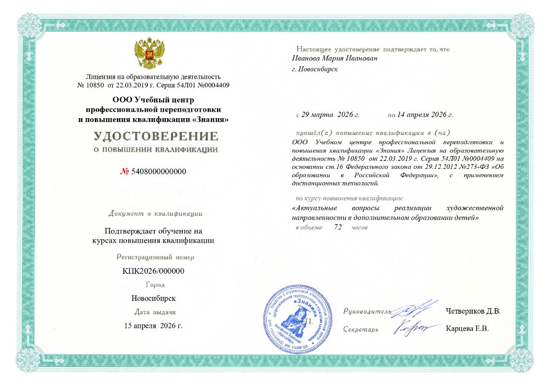 удостовЕрение курса повышения квалификации