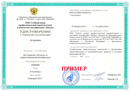 По окончании курсы выдается удостоверение о повышении квалификации.