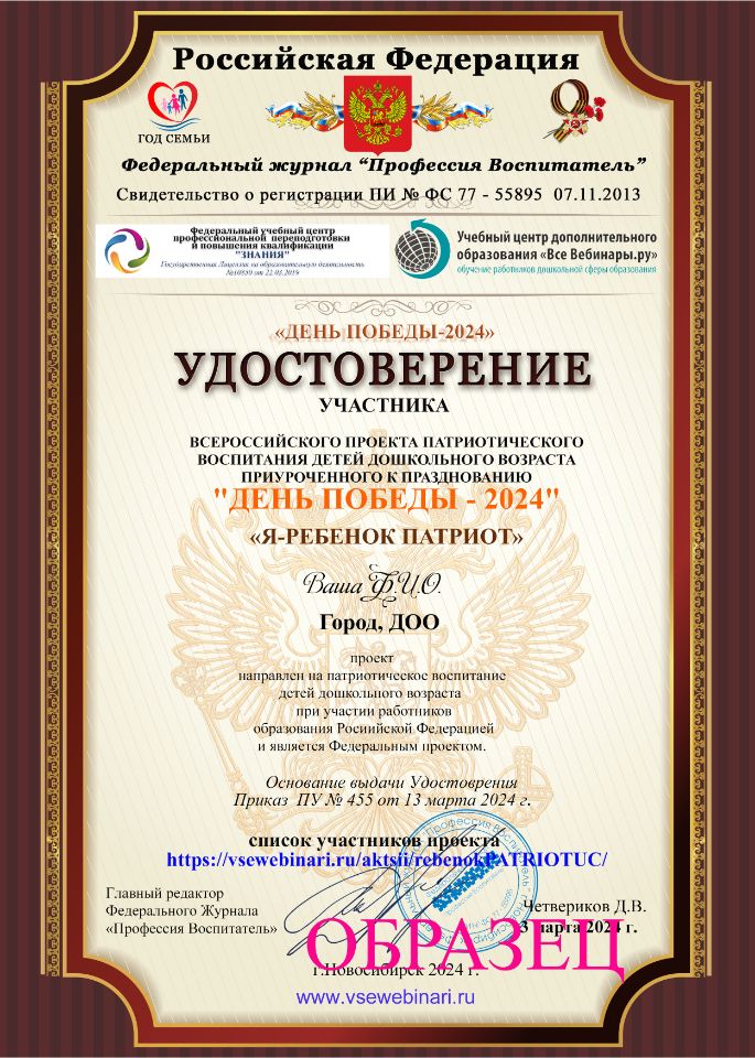 6.УДОСТОВЕРЕНИЕ УЧАСТНИКА ПРОЕКТА "Я-РЕБЕНОК ПАТРИОТ"